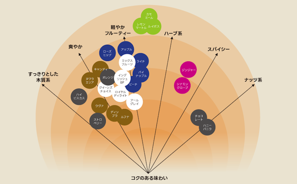 茶葉の特徴を引き立てるブレンドと花びらやドライフルーツを加えた個性あふれる香りのバリエーションと優雅な味わいはワンランク上の満足度と「格調高い癒し」を得られます。