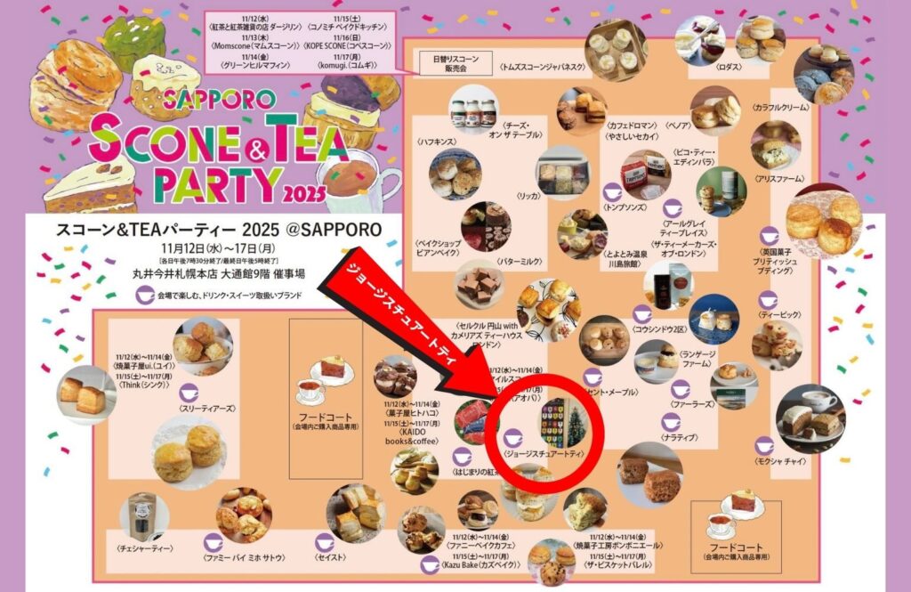 紅茶好き・スコーン好き大注目のイベント「スコーン&TEA パーティー」。おかげ様で毎回どの会場も大盛況です!2025年11月は、丸井今井札幌本店での開催が決定!George Steuart Teaも出店いたします!