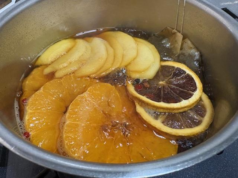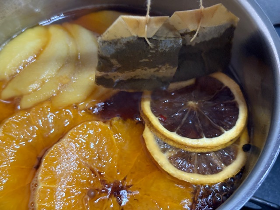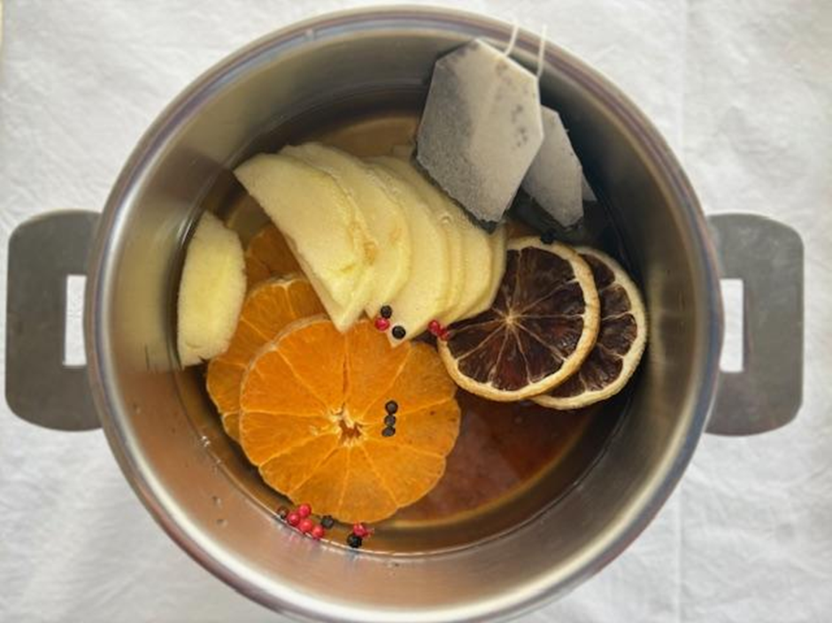 ➁ティーパックを取り除いた後、さらに25分程温めてワインに香りを移す(沸騰させないように)。