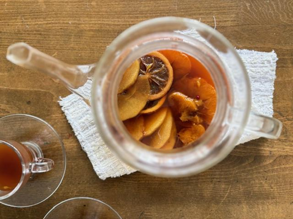 白ワインのフルーティーな酸味と、イングリッシュブレックファーストの芳醇なコクが溶け合う、新感覚のホットワインティー。