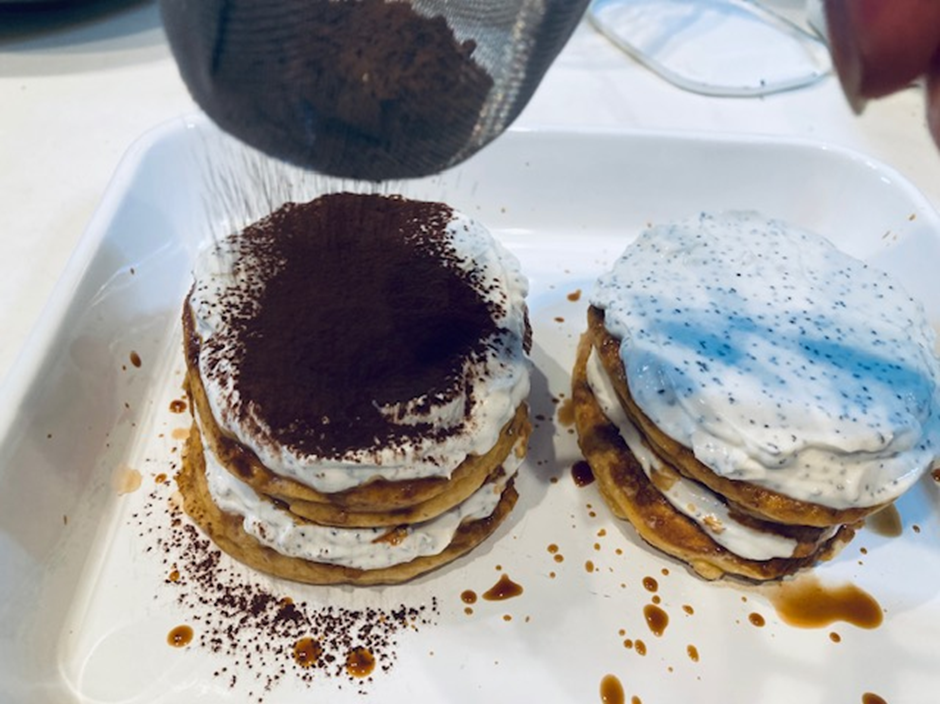 ⑥食べる前にココアパウダーを茶漉しに入れて、ふりかける。