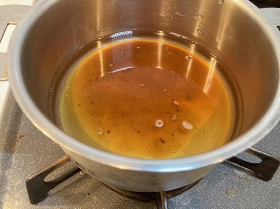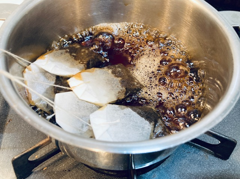 2分後、ティーバッグを取り出し、さらに中身が半量になるまで煮詰める。シロップを冷ましておく。