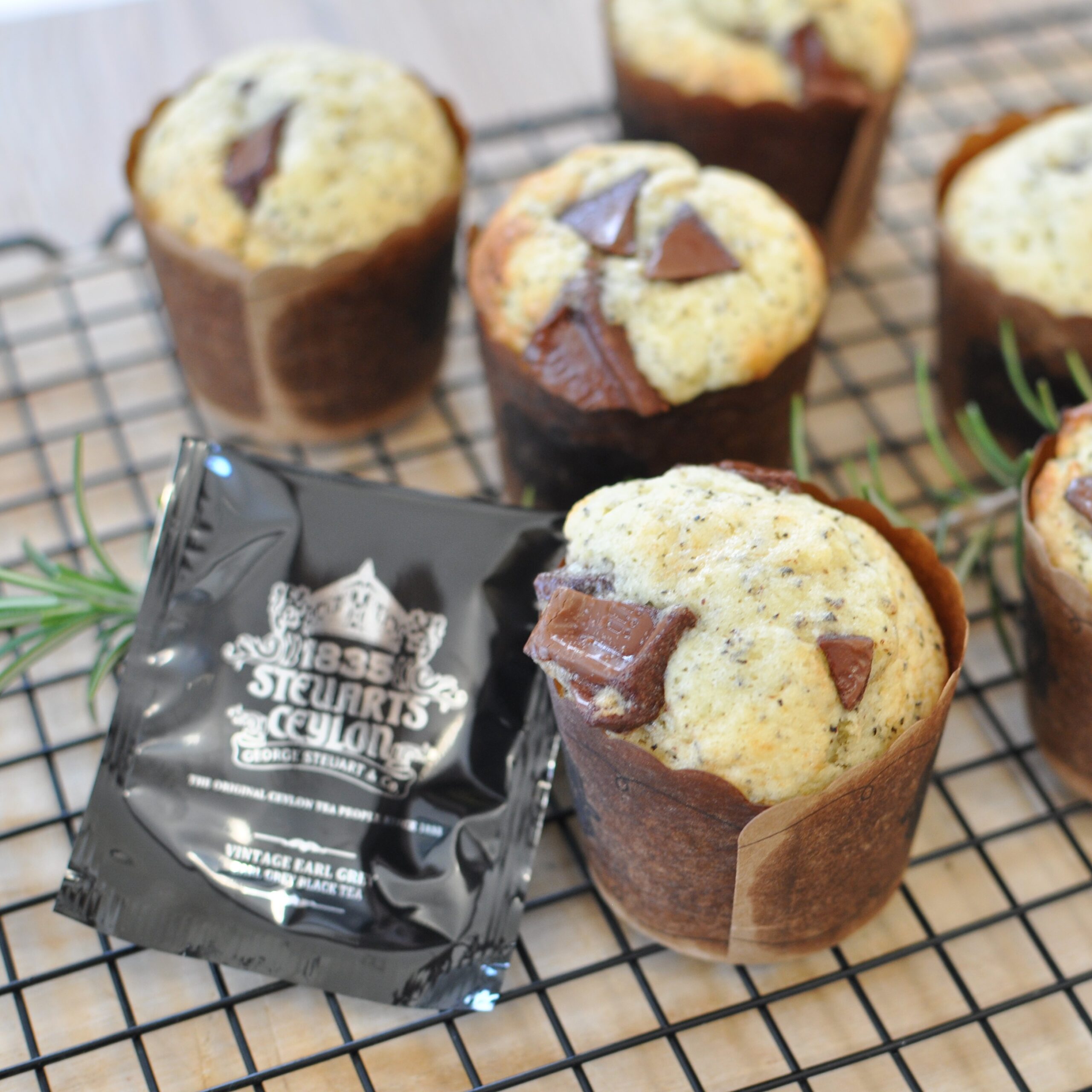 バレンタインにもおすすめの、混ぜて焼くだけ簡単チョコ紅茶マフィンです。ミニサイズのカップで、プレゼントにもぴったり。板チョコを割ってのせることで、ちょっぴりジャンキーな仕上がりに。